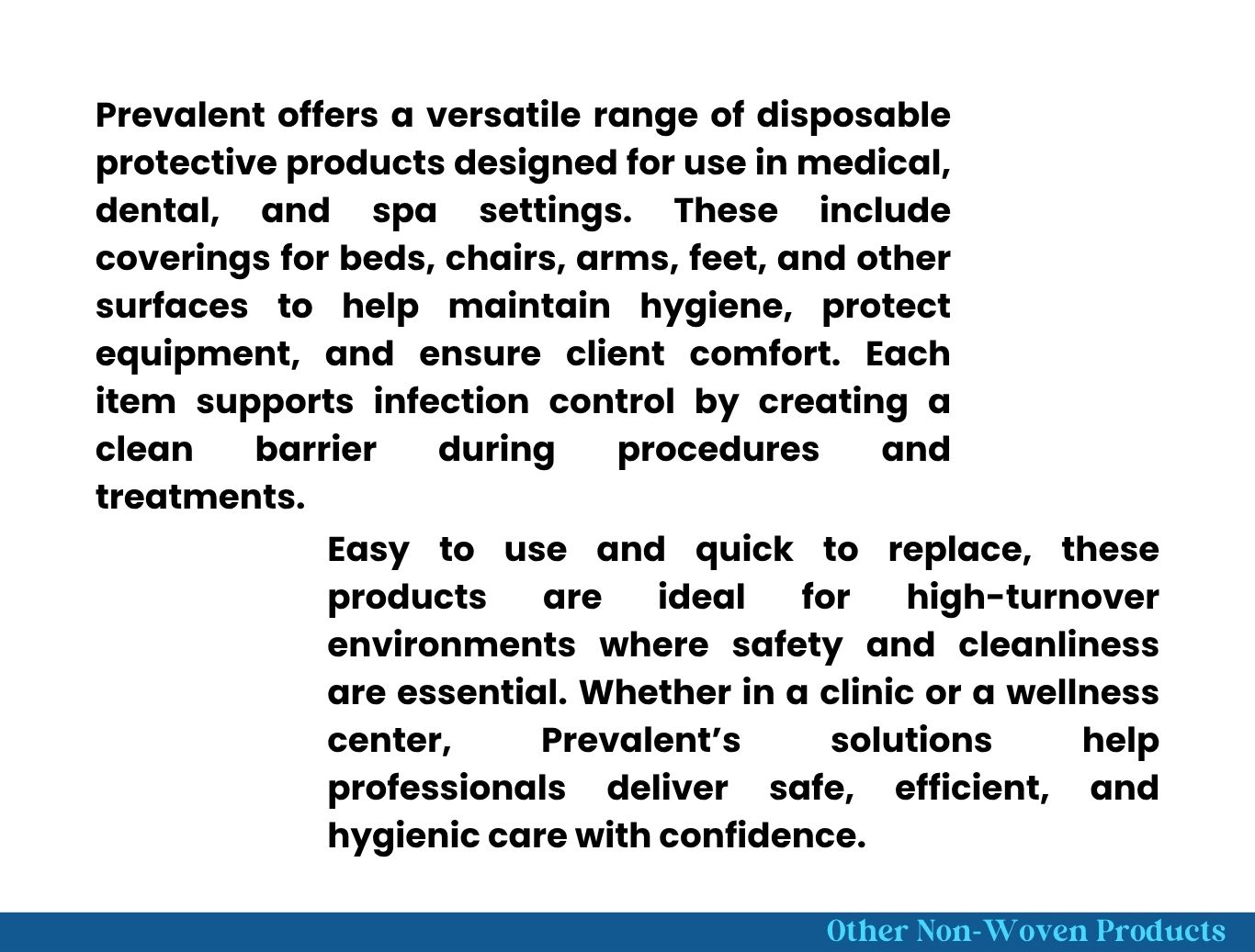 Easy to use and replace, these products are perfect for busy settings where cleanliness and safety matter. Whether in a clinic or spa, Prevalent helps professionals provide clean and comfortable care with confidence.