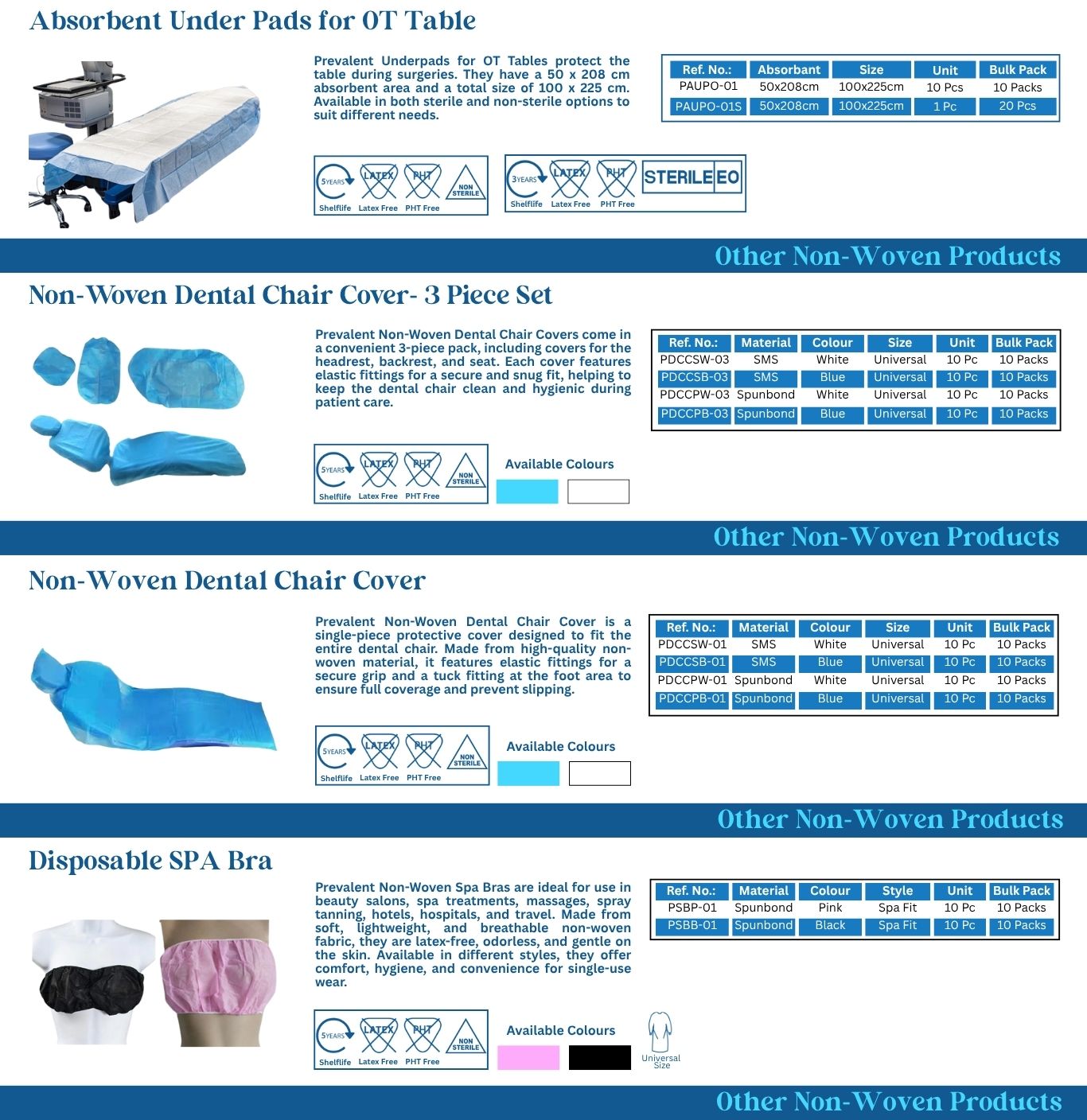 Prevalent offers a wide range of disposable protective products for medical, spa, and wellness use. These include covers for beds, chairs, arms, feet, and other surfaces to keep things clean, protect equipment, and ensure comfort. They help maintain hygiene by creating a barrier during treatments.